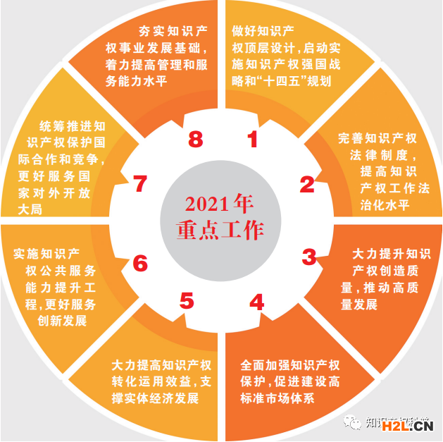 今年是“十四五”的開局之年,同時也是知識產權強國戰(zhàn)略綱要實施的第一年,做好今年的工作要著力抓好以下8個方面: