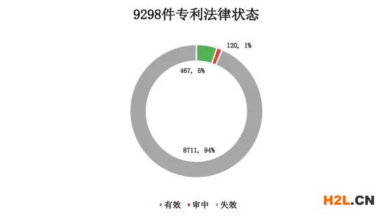 樂視的9298項(xiàng)國內(nèi)專利中有839項(xiàng)發(fā)生了轉(zhuǎn)讓,其中發(fā)明專利634項(xiàng)、實(shí)用新型專利53項(xiàng)和外觀設(shè)計(jì)專利152項(xiàng),當(dāng)前的法律狀態(tài)為有效188項(xiàng)、審中84項(xiàng)和失效567項(xiàng),同樣是專利凄涼。