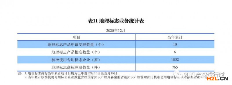 2020年,我局受理地理標(biāo)志產(chǎn)品保護(hù)申請10個(gè),批準(zhǔn)保護(hù)地理標(biāo)志產(chǎn)品6個(gè),我局核準(zhǔn)使用地理標(biāo)志產(chǎn)品專用標(biāo)志企業(yè)1052家,核準(zhǔn)注冊地理標(biāo)志商標(biāo)765件。截至2020年底,累計(jì)批準(zhǔn)地理標(biāo)志產(chǎn)品2391個(gè),核準(zhǔn)專用標(biāo)志使用企業(yè)9479家,累計(jì)注冊地理標(biāo)志商標(biāo)6085件。
