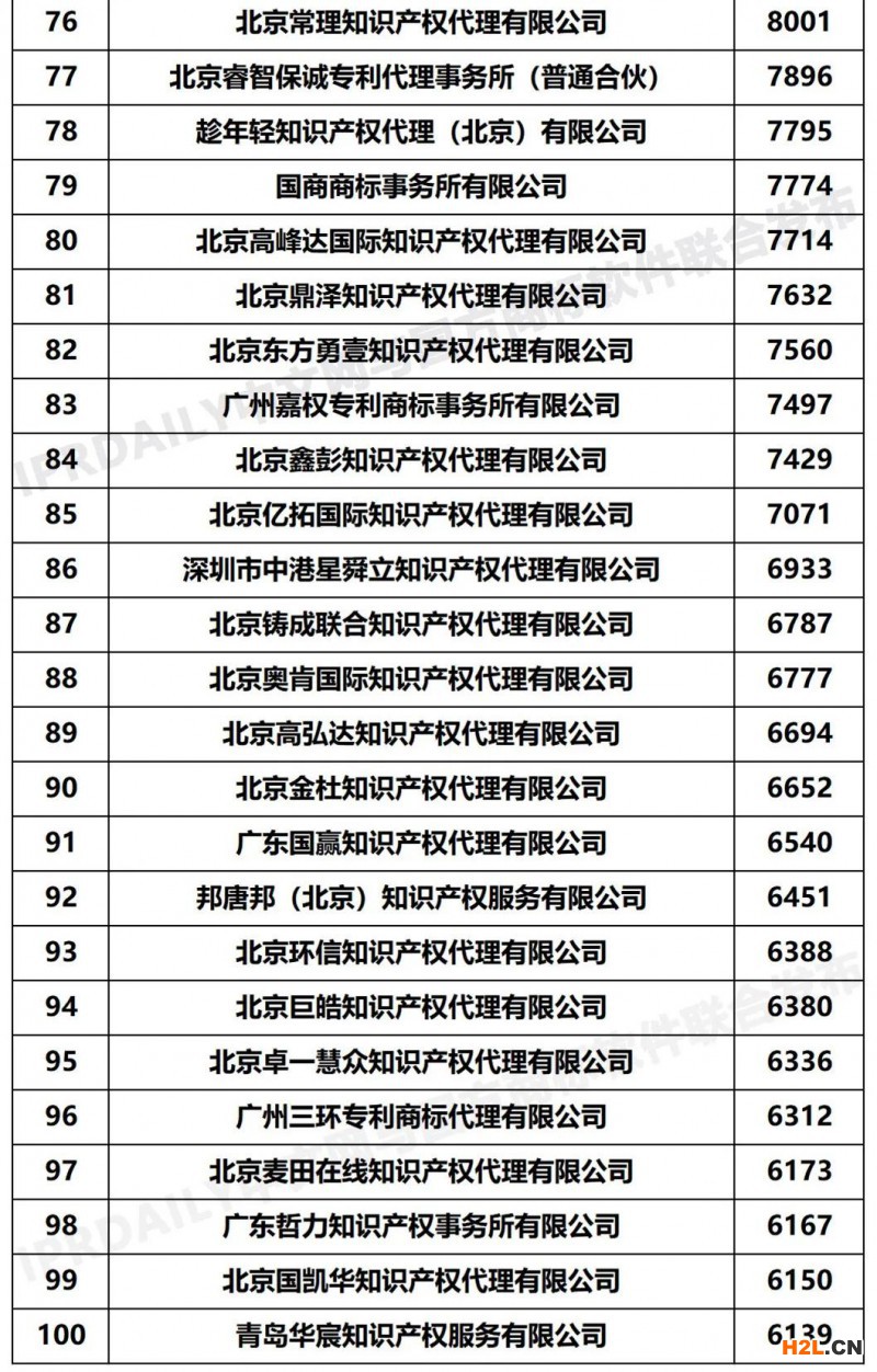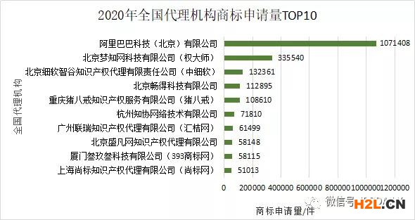 2020年度全國(guó)商標(biāo)代理機(jī)構(gòu)申請(qǐng)量排行榜(TOP100)