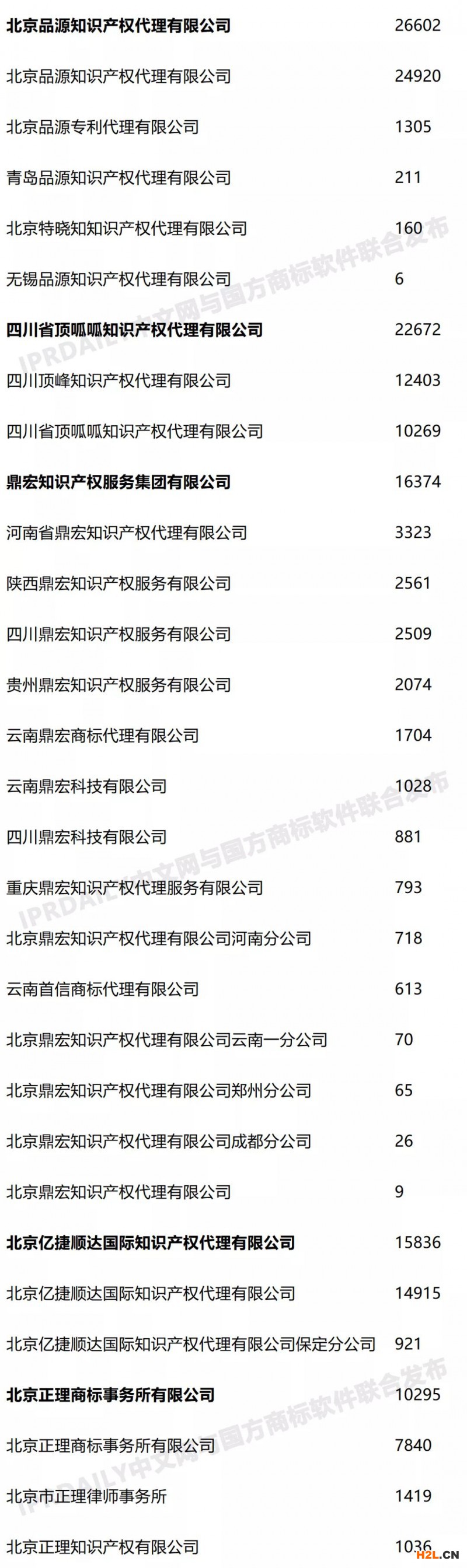1、全國(guó)商標(biāo)申請(qǐng)量TOP10代理機(jī)構(gòu)