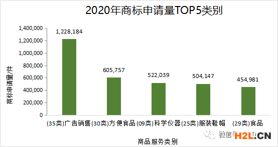 2、2020年各類(lèi)別商標(biāo)申請(qǐng)量統(tǒng)計(jì)分析