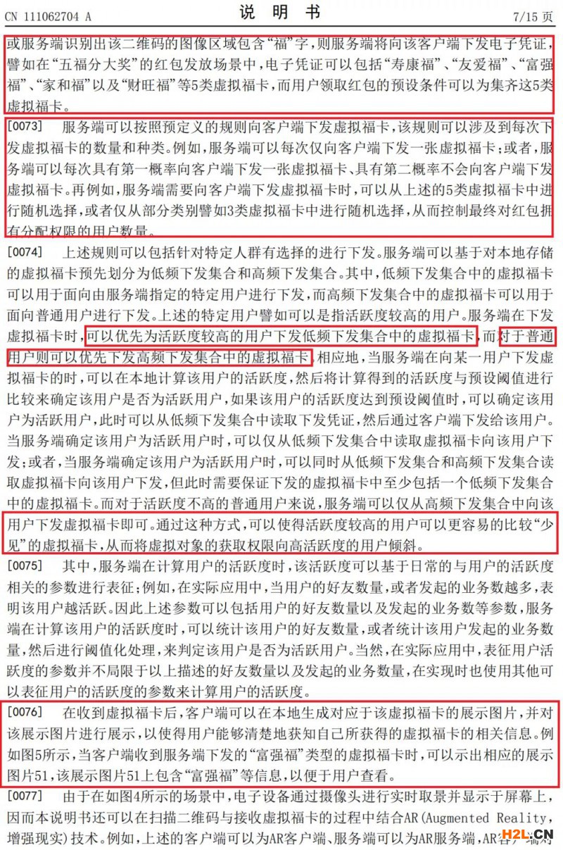 從專利說明書中可以看出,這一專利主要用于等愛國(guó)福、富強(qiáng)福、和諧福、友善福和敬業(yè)福等基本福卡的掃福操作,并且支付寶會(huì)根據(jù)你的活躍性來(lái)發(fā)布是否能掃到低頻率掃到的???。
