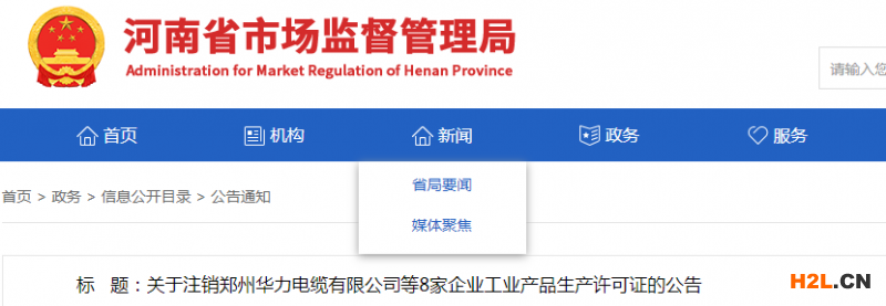 近日,河南省市場(chǎng)監(jiān)督管理局發(fā)出公告,注銷(xiāo)鄭州華立電纜有限公司等8家企業(yè)工業(yè)產(chǎn)品生產(chǎn)許可證