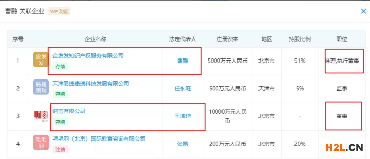 原來,該案被異議人“財(cái)寶有限公司”與其商標(biāo)代理機(jī)構(gòu)“財(cái)寶知識(shí)產(chǎn)權(quán)服務(wù)有限公司”為關(guān)聯(lián)公司。根據(jù)企查查查詢結(jié)果顯示,被異議人一方高管是作為知識(shí)產(chǎn)權(quán)代理機(jī)構(gòu)的實(shí)際控股人,其對(duì)商標(biāo)行業(yè)了解頗深,故上述公司申請注冊商標(biāo)的行為顯然是商標(biāo)代理機(jī)構(gòu)假借其關(guān)聯(lián)公司之名以達(dá)到規(guī)避法律之目的,違反《商標(biāo)法》第十九條第四款之規(guī)定。