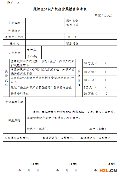 12.越城區(qū)知識產(chǎn)權(quán)企業(yè)獎勵申請表;