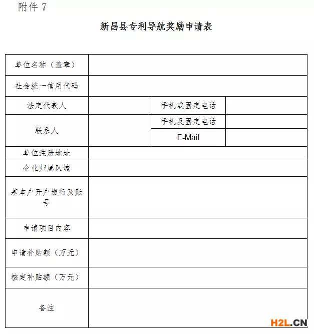 (1)新昌縣專利導航獎勵申請表(附件7);