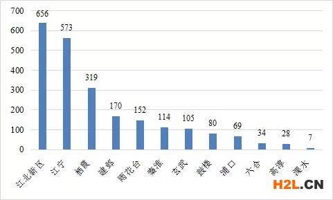 2020年度,南京保護(hù)中心共受理來自南京地區(qū)12個區(qū)域備案主體提交的專利預(yù)審案件,其中江北新區(qū)、江寧區(qū)、棲霞區(qū)分別以656件、573件、319件排名提交數(shù)量前三名,前三名區(qū)域提交專利預(yù)審案件數(shù)量占總數(shù)量的67.10%。