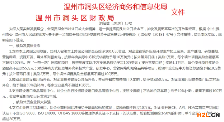 溫州市洞頭區(qū):高新補(bǔ)助20萬元,國際商標(biāo)獎勵(lì)10萬元