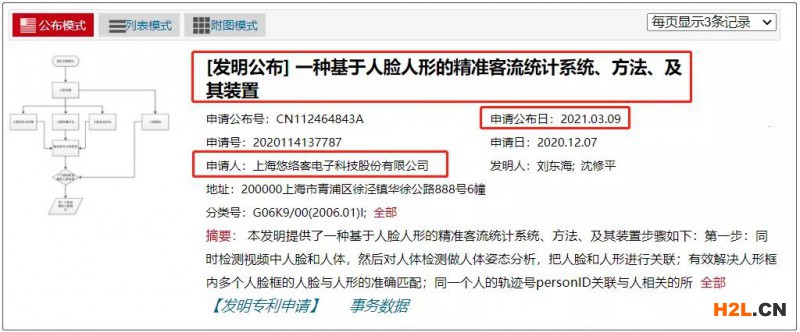 2020年12月7日,該公司申請了“一種基于人臉人形的精準客流統(tǒng)計系統(tǒng)、方法、及其裝置”發(fā)明專利,該專利通過分析人形的軌跡及其人體姿態(tài),判斷人員的是否進店,是否過店;對于進店的人形進行抓拍;通過店員的人體重識別;去除店門口進過抓拍的人臉。