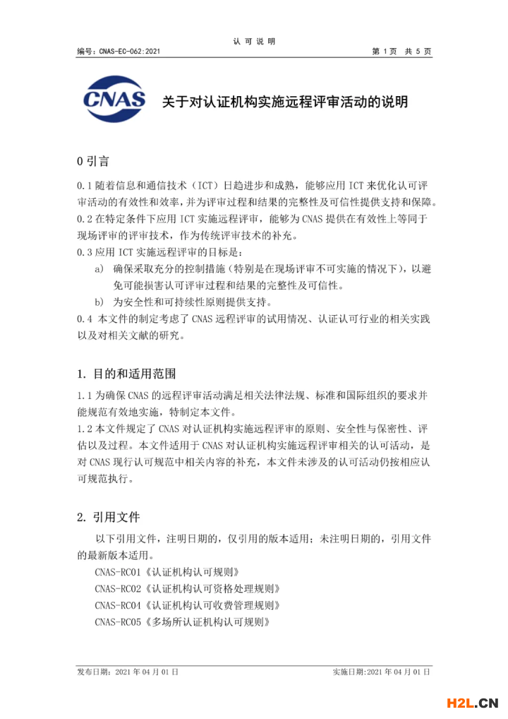 認(rèn)證機(jī)構(gòu)遠(yuǎn)程評(píng)審活動(dòng)說(shuō)明發(fā)布實(shí)施