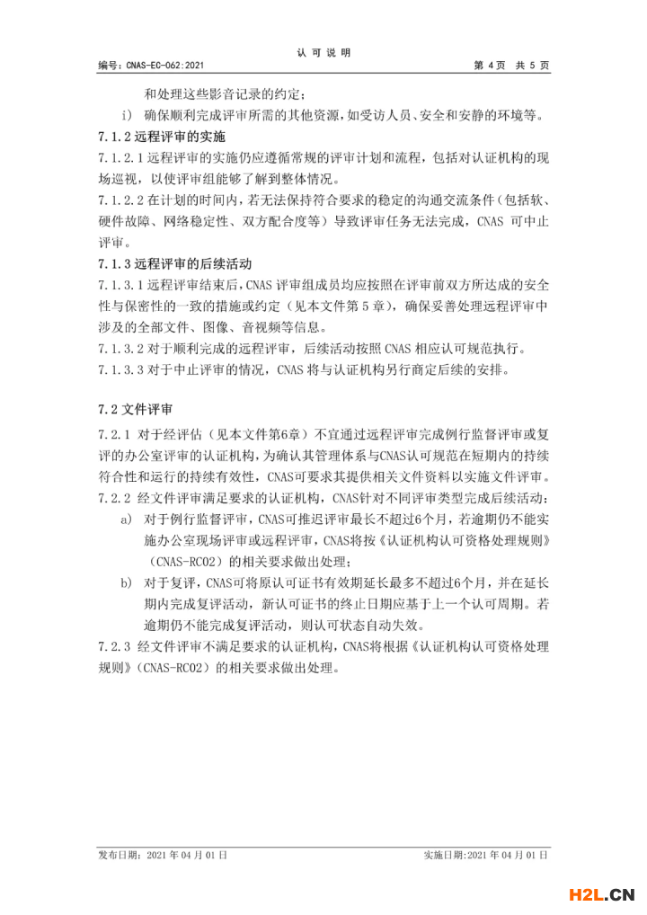 關(guān)于發(fā)布和實(shí)施《關(guān)于對(duì)認(rèn)證機(jī)構(gòu)實(shí)施遠(yuǎn)程評(píng)審活動(dòng)的說(shuō)明》等文件的通知