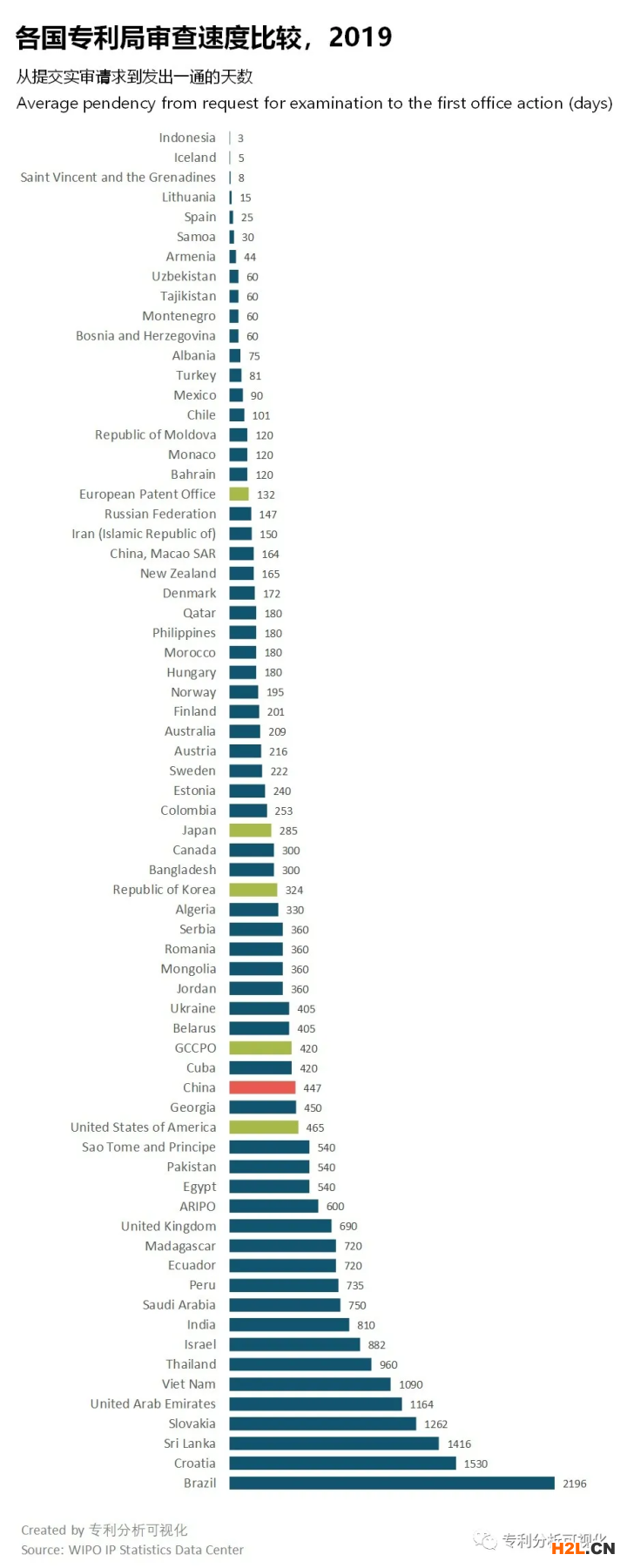 印度尼西亞,從提交實(shí)質(zhì)審查請(qǐng)求到發(fā)出一通的時(shí)間竟然只有3天,冰島只需要5天,圣文森特和格林納丁斯只需要8天。