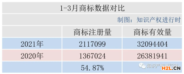 2021年1-3月,商標(biāo)注冊(cè)量為211.7099萬(wàn)件。截至2021年3月底,有效注冊(cè)商標(biāo)量3209.4404萬(wàn)件。