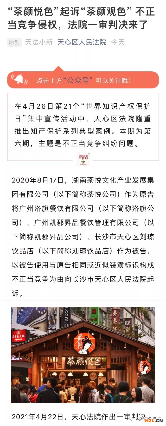 核心提示:昨天,微博話題#茶顏悅色起訴茶顏觀色一審判決#和#茶顏悅色小票#上了熱搜。媽耶,茶顏悅色的商標(biāo)侵權(quán)糾紛官司終于有結(jié)果了!在4月26日第21個