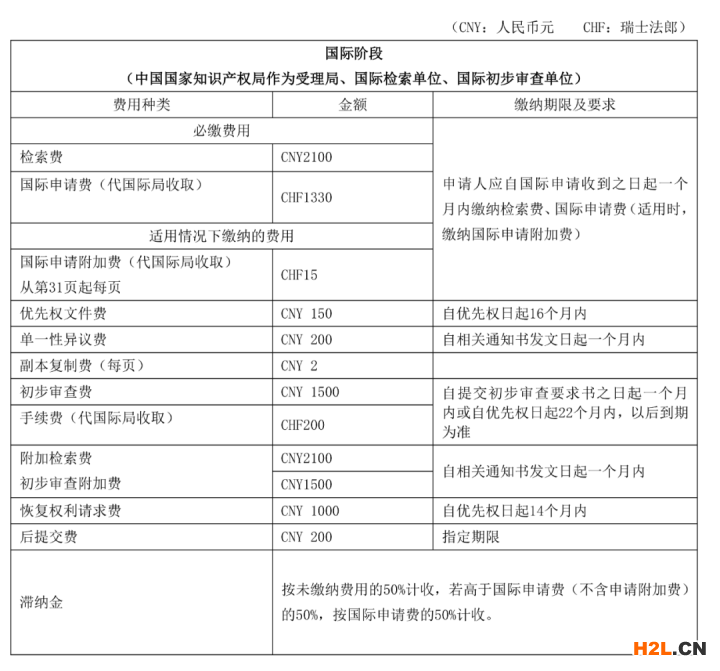 PCT 國(guó)際申請(qǐng)費(fèi)用標(biāo)準(zhǔn)一覽表(國(guó)際階段)