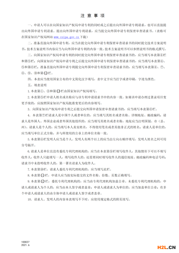 100027向外國申請專利保密審查請求書