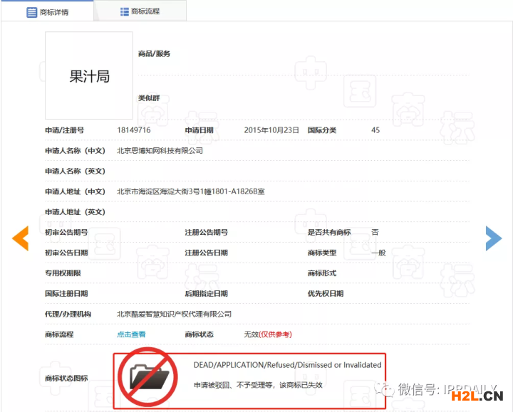 另外,據(jù)商標網(wǎng)查詢顯示,“果汁局”目前有4件商標,由北京思博知網(wǎng)科技有限公司于2015年10月23日分別申請在國際分類第35類廣告銷售、41類教育娛樂、42類設計研究、45類社會法律上。