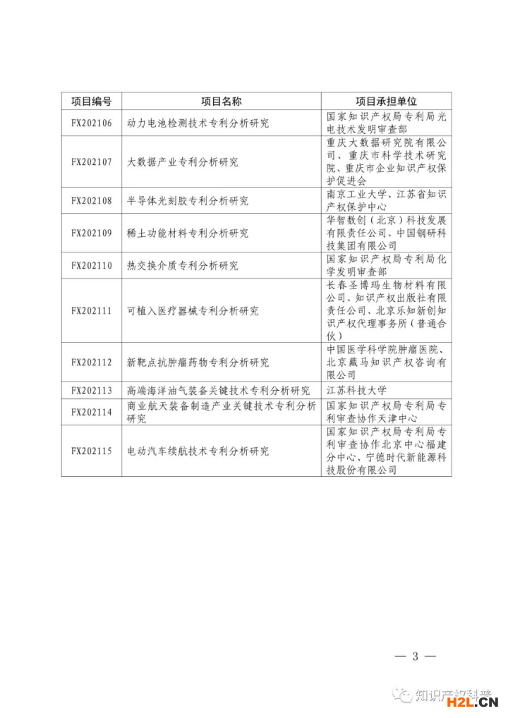 2021年度國(guó)家知識(shí)產(chǎn)權(quán)局專利專項(xiàng)研究項(xiàng)目立項(xiàng)工作已經(jīng)完成,現(xiàn)將立項(xiàng)名單印發(fā)。請(qǐng)項(xiàng)目承擔(dān)方按照項(xiàng)目管理方的相關(guān)要求,認(rèn)真做好項(xiàng)目后續(xù)組織實(shí)施工作,按計(jì)劃開(kāi)展研究工作,保證研究進(jìn)度和質(zhì)量。