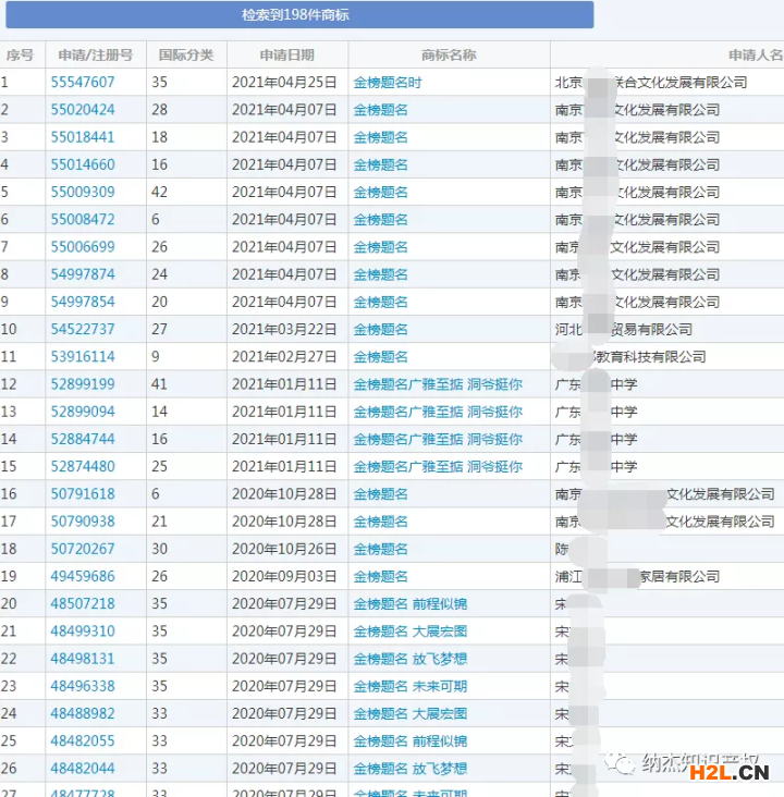 再看其他與“高考加油”相關(guān)的商標(biāo),如“考神護(hù)體”“金榜/題提名”“旗開(kāi)得勝”“高考加油站”“翰林榜”等,無(wú)一不體現(xiàn)著社會(huì)各界對(duì)高考學(xué)子的關(guān)注和期待。