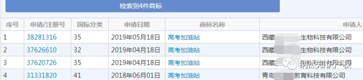 基本上在高考結(jié)束后沒(méi)多久,就申請(qǐng)了與高考相關(guān)的“紫腚XX”商標(biāo)。