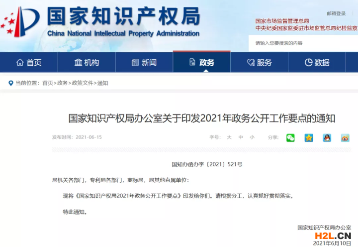 國家知識產(chǎn)權(quán)局辦公室關(guān)于印發(fā)2021年政務(wù)公開工作要點(diǎn)的通知