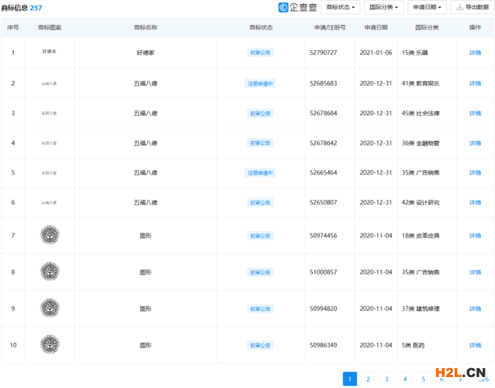 據(jù)企查查數(shù)據(jù)顯示,這家公司申請了257件商標(biāo)。