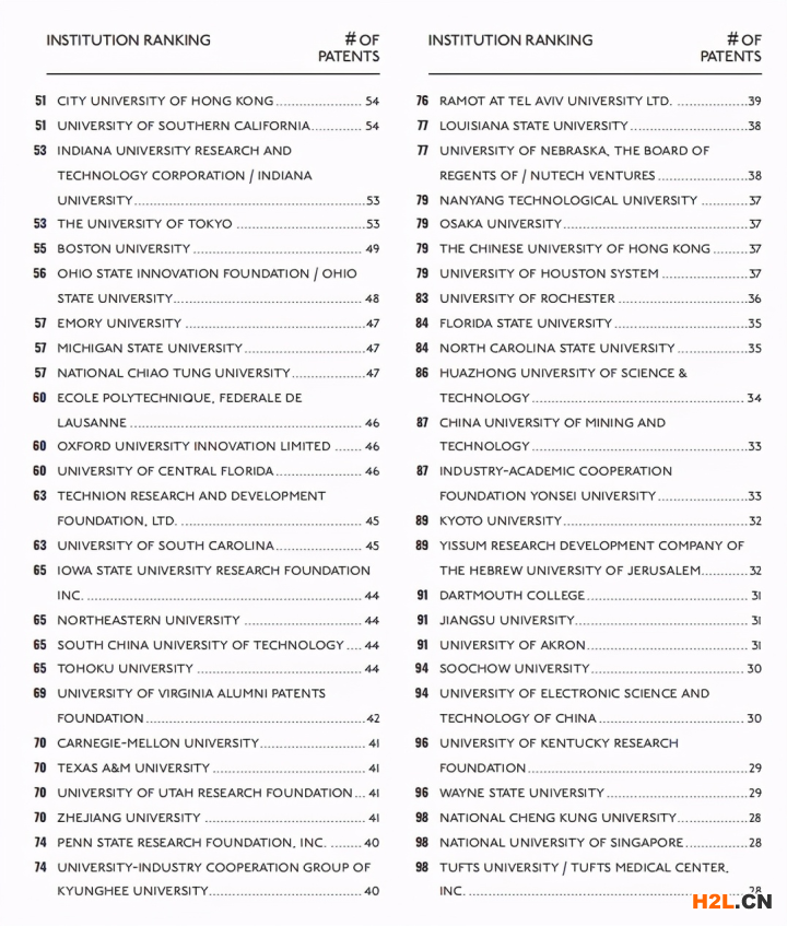 原文標題:List of top 100 universities for patents revealed