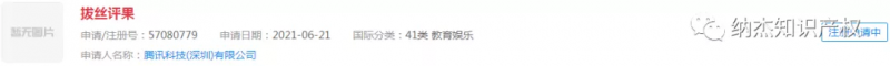 沒(méi)準(zhǔn)兒人家還很愛(ài)吃甜如初戀的“拔絲蘋(píng)果”呢,因?yàn)轵v訊公司在6月21日申請(qǐng)注冊(cè)了第41類(lèi)教育娛樂(lè)的“拔絲評(píng)果”商標(biāo)