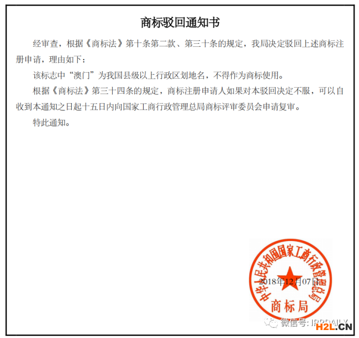 [1]《中華人民共和國商標(biāo)法》第十條:縣級(jí)以上行政區(qū)劃的地名或者公眾知曉的外國地名,不得作為商標(biāo)。但是,地名具有其他含義或者作為集體商標(biāo)、證明商標(biāo)組成部分的除外;已經(jīng)注冊(cè)的使用地名的商標(biāo)繼續(xù)有效。