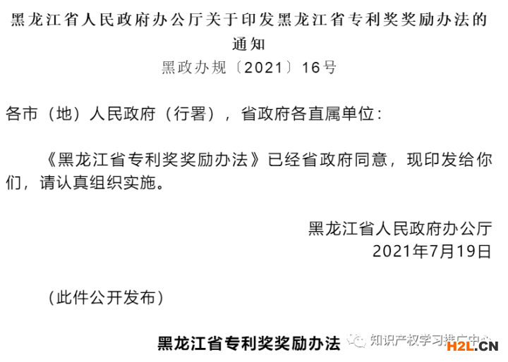 黑龍江省專利獎(jiǎng)獎(jiǎng)勵(lì)辦法