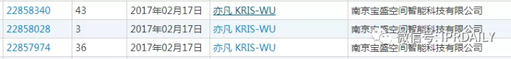 中國商標網(wǎng)查詢后,早期相關的商標出現(xiàn)在2017年,將“亦凡”和“KRISWU”中英文搭配組合,調整順序: