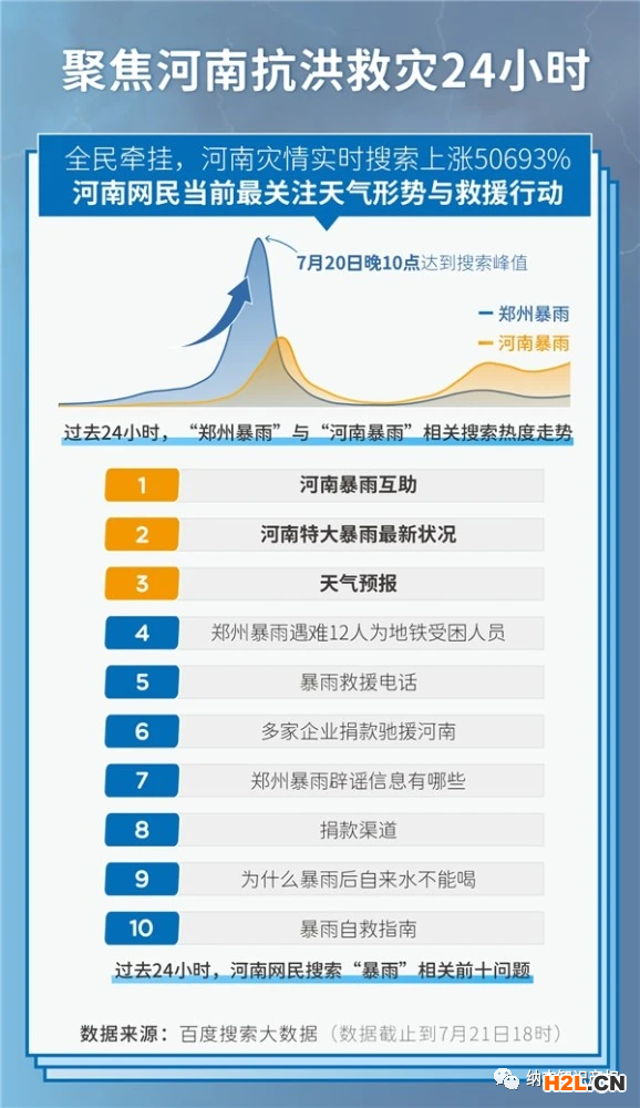 根據(jù)百度搜索大數(shù)據(jù)顯示,河南特大雨情出現(xiàn)后,相關(guān)搜索在24小時內(nèi)實時上升50693%,成舉國焦點。