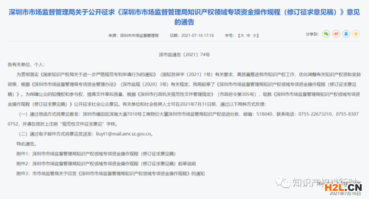 深圳市市場監(jiān)督管理局日前公布知識產權領域專項資金操作規(guī)程(征求意見稿)。