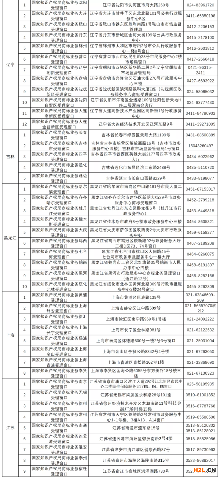 地方商標(biāo)業(yè)務(wù)受理窗口信息表