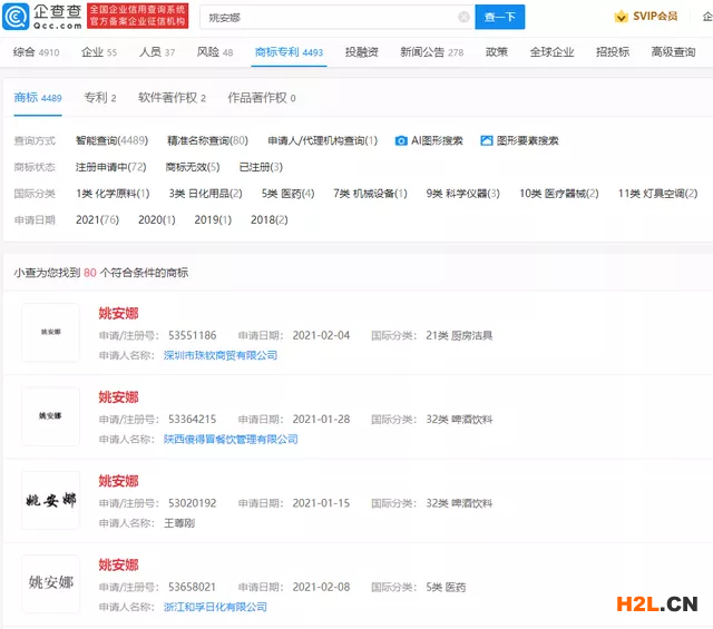 3月15日,有媒體查詢(xún)中國(guó)商標(biāo)網(wǎng)公開(kāi)信息發(fā)現(xiàn),在所有83件以“姚安娜”為關(guān)鍵詞的商標(biāo)申請(qǐng)中,已有14件被駁回。