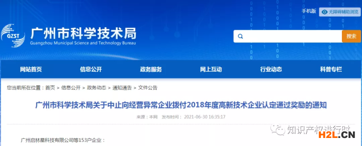 近日,廣州市科學(xué)技術(shù)局發(fā)布通知,中止向153家企業(yè)撥付2018年高新技術(shù)企業(yè)認(rèn)定通過(guò)獎(jiǎng)勵(lì),在這153家企業(yè)中,主要是因?yàn)榇嬖谝韵?種情形:
