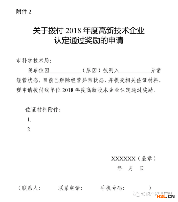 2.關(guān)于撥付2018年度高新技術(shù)企業(yè)認(rèn)定通過(guò)獎(jiǎng)勵(lì)的申請(qǐng)(模板).doc