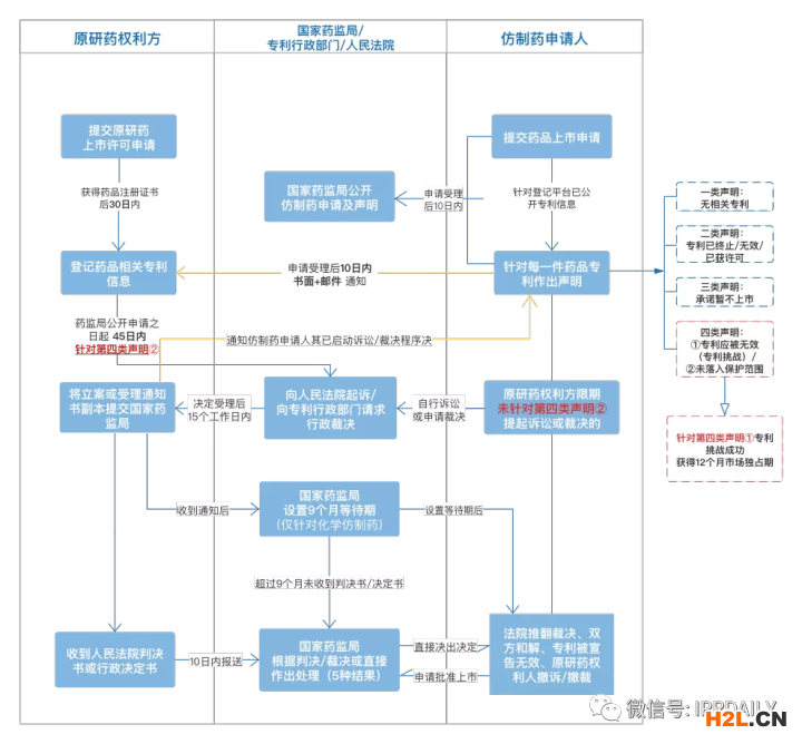 相較于《實施辦法征求意見稿》,正式頒布的《實施辦法》明確:仿制藥上市申請被受理后的10個工作日內,原研藥權利方應當能夠通過以下兩種方式獲悉相應內容:①根據(jù)藥品評審機構在信息登記平臺公開的信息;②收到仿制藥申請人的紙質和電子郵件通知。如此一來,原研藥權利方可以根據(jù)仿制藥的上市申請及聲明類型提前制定應對策略,尤其是能夠直接決定二者博弈勝負的第四類聲明。