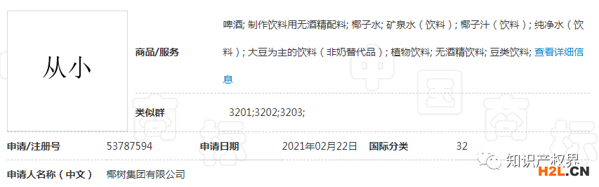 中國(guó)商標(biāo)網(wǎng)顯示,今年2月,椰樹(shù)提交了“從小”“喝到大”的商標(biāo)申請(qǐng),目前“喝到大”商標(biāo)流程狀態(tài)變更為“駁回通知發(fā)文”,而“從小”商標(biāo)仍在申請(qǐng)中。