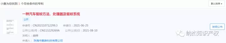其實(shí)像魅族發(fā)明的這種汽車驅(qū)蚊系統(tǒng),蝸牛納通過檢索看到早已有公司獲得了相關(guān)專利的授權(quán)。
