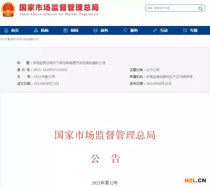 市場監(jiān)管總局關(guān)于規(guī)范新能源汽車檢測收費(fèi)的公告