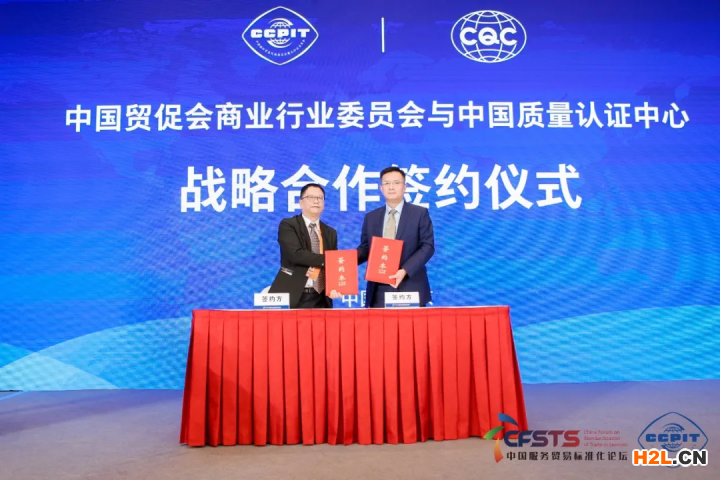 主論壇上,中國(guó)貿(mào)促會(huì)商業(yè)行業(yè)委員會(huì)與中國(guó)質(zhì)量認(rèn)證中心簽署戰(zhàn)略合作協(xié)議,中國(guó)貿(mào)促會(huì)商業(yè)行業(yè)委員會(huì)會(huì)長(zhǎng)曾亞非與謝肇煦分別代表雙方簽字。