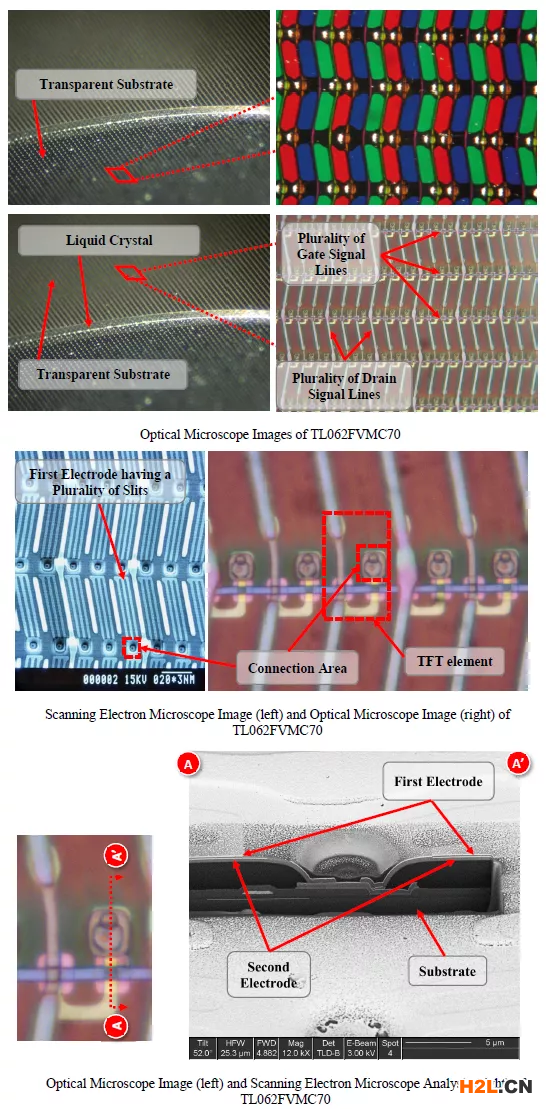 其實(shí)這一點(diǎn),從JDI和松下此次起訴天馬微的美國(guó)訴狀中也可以看到一些端倪。從日本企業(yè)解剖天馬微的LCD產(chǎn)品,并做了細(xì)致的分析和比對(duì),以美國(guó)專利US8.218.119和天馬微的LCD產(chǎn)品的對(duì)應(yīng)為例: