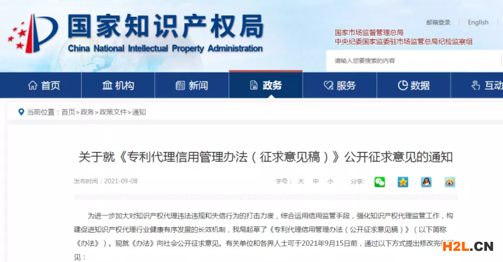 9月8日,國(guó)家知識(shí)產(chǎn)權(quán)局網(wǎng)站發(fā)布了關(guān)于就《專利代理信用管理辦法(征求意見稿)》公開征求意見的通知,有關(guān)單位和各界人士可于2021年9月15日前,通過(guò)電子郵件、傳真或者信函的方式提出修改完善意見。