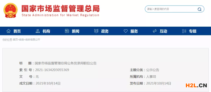 近日,市場監(jiān)管總局人事司發(fā)布國家市場監(jiān)督管理總局公務(wù)員錄用職位公告。