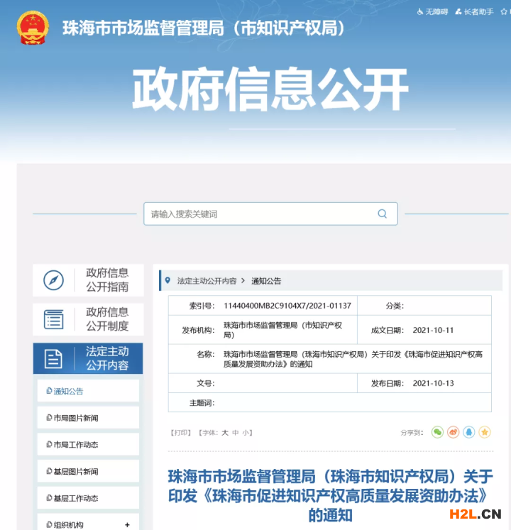 核心提示:近日,珠海市市場監(jiān)督管理局(珠海市知識產權局)印發(fā)關于《珠海市促進知識產權高質量發(fā)展資助辦法》的通知。其中提到:第十六條對我市知識