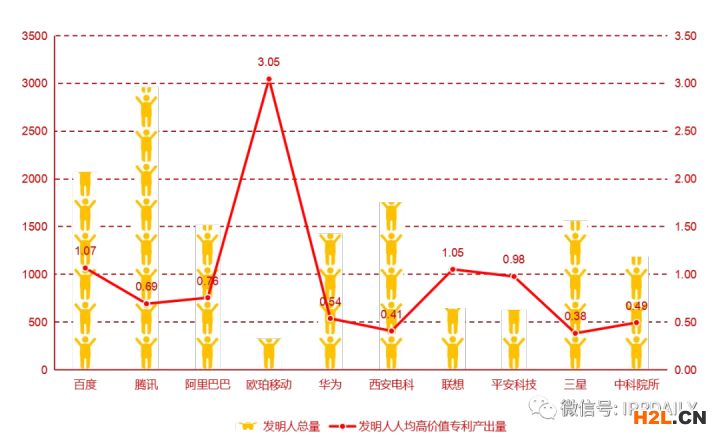 報(bào)告顯示,計(jì)算機(jī)視覺高價(jià)值專利發(fā)明人團(tuán)隊(duì)規(guī)模排名前三的分別是騰訊、百度公司和西安電子科技大學(xué)。從人均產(chǎn)出維度分析,百度、騰訊和華為公司在發(fā)明團(tuán)隊(duì)配置方面更為均衡,更有利于未來的技術(shù)創(chuàng)新。