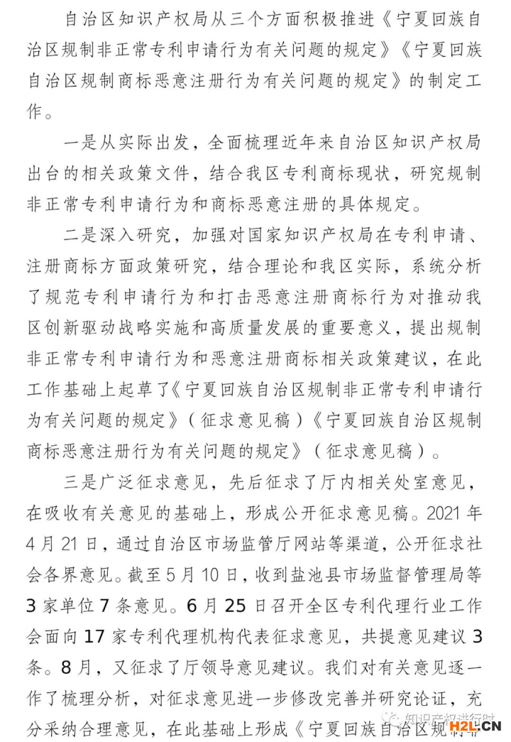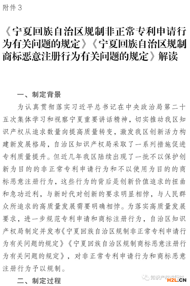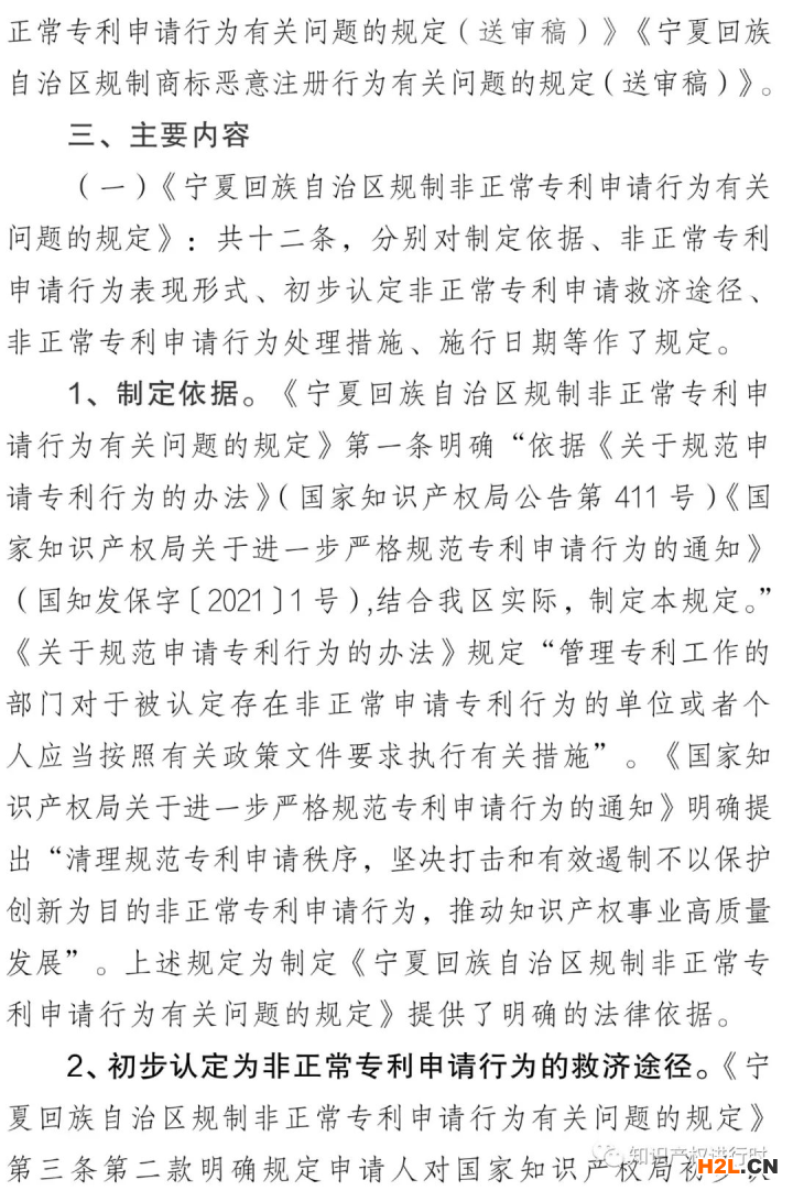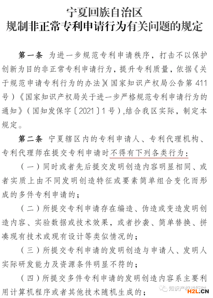 近日,寧夏知識(shí)產(chǎn)權(quán)局印發(fā)關(guān)于規(guī)制非正常專利申請(qǐng)行為、商標(biāo)惡意注冊(cè)行為的規(guī)定,其中提到: