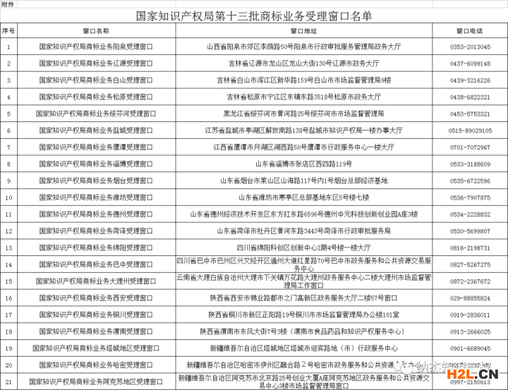 附件:國家知識產(chǎn)權(quán)局第十三批商標業(yè)務(wù)受理窗口名單